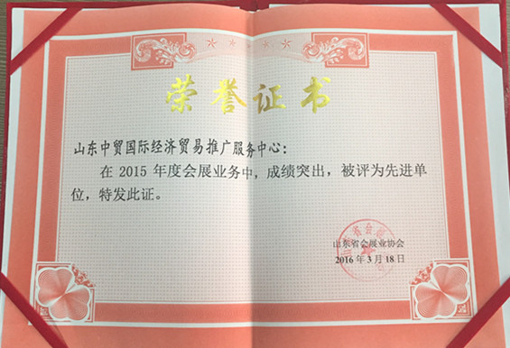 2015年度山東會展行業(yè)先進單位。 記者 李曉夢/攝