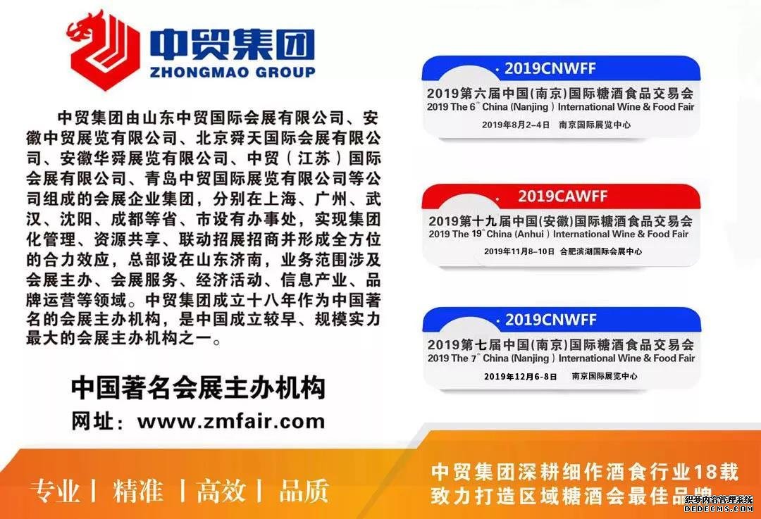8月2日,以“共謀發展、同譜新篇”為主題的2019第六屆中國(南京)國際糖酒食品交易會隆重開幕。展會由中國酒類流通協會、江蘇省商務廳、江蘇工商業聯合會指導,江蘇省酒類行業協會、中貿科技集團有限公司主辦,山東中貿江蘇國際會展有限公司承辦。旨在通過展示、品鑒、交易、論壇等系列活動,重點展示我國改革開放40年以來糖酒食品領域新技術、新產品、新業態、新模式和行業發展新面貌、新氣象及新成就。