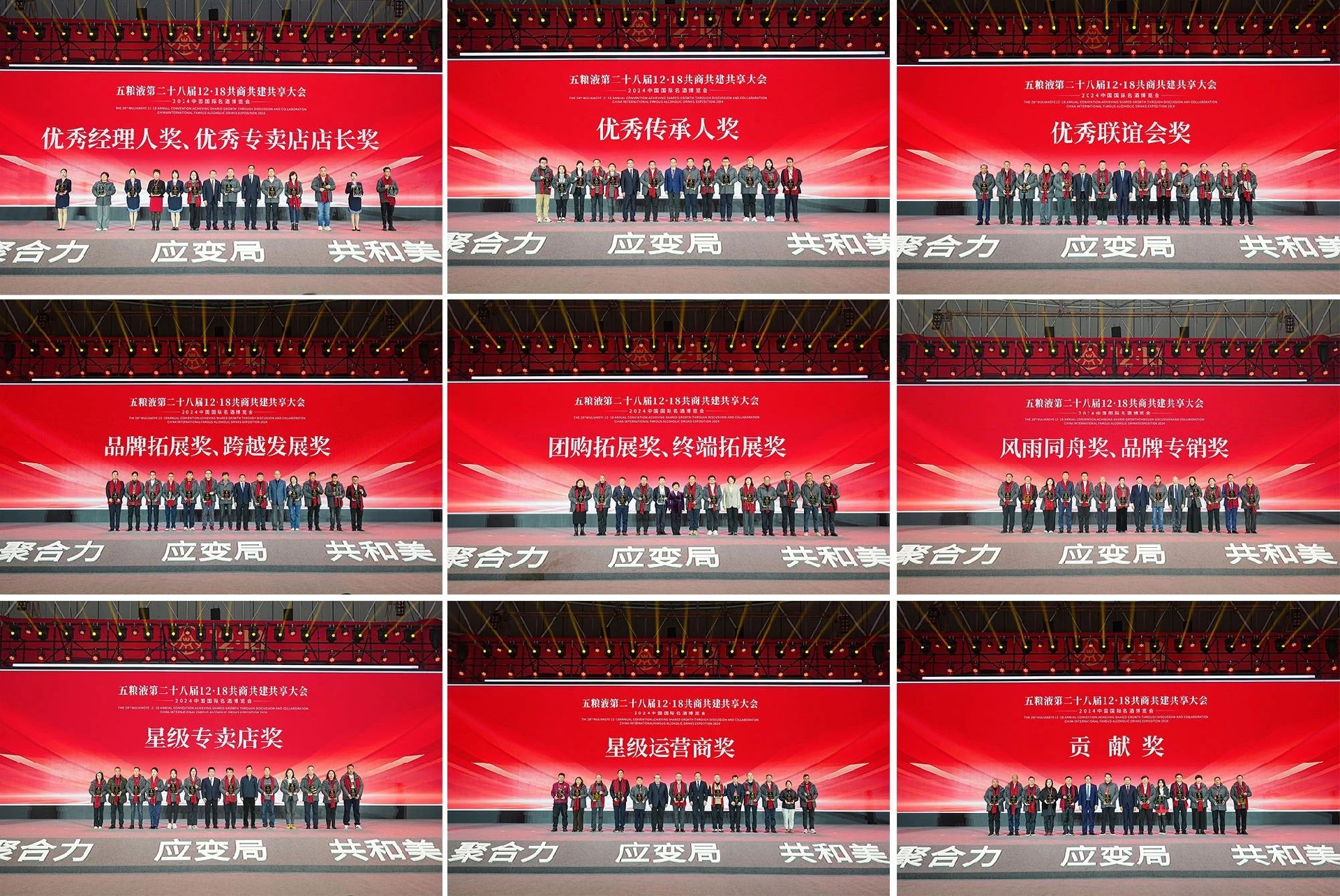 會(huì)上,五糧液還對(duì)在2024年表現(xiàn)突出的經(jīng)銷(xiāo)商予以了表彰和獎(jiǎng)勵(lì)。分別為獲獎(jiǎng)代表頒發(fā)了“優(yōu)秀經(jīng)理人”獎(jiǎng)、“優(yōu)秀專(zhuān)賣(mài)店店長(zhǎng)”獎(jiǎng)、“優(yōu)秀傳承人”獎(jiǎng)、“優(yōu)秀聯(lián)誼會(huì)”獎(jiǎng)、“團(tuán)購(gòu)?fù)卣?、終端拓展 ”獎(jiǎng)、“品牌拓展、跨越發(fā)展”獎(jiǎng)、“風(fēng)雨同舟、品牌專(zhuān)銷(xiāo)”獎(jiǎng)、“星級(jí)專(zhuān)賣(mài)店”獎(jiǎng)、“星級(jí)運(yùn)營(yíng)商”獎(jiǎng)和“貢獻(xiàn)”獎(jiǎng)等獎(jiǎng)項(xiàng)。